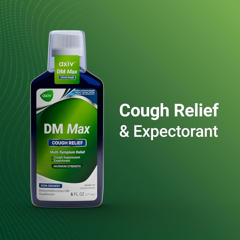 AXIV DM Max Liquid Cough & Cold Medicine for Adults, Cold and Flu Medicine for Excess Mucus Relief, 6 fl oz