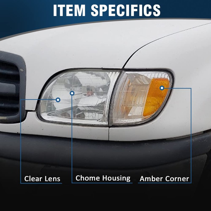 AXLAHA 2005-2006 Tundra Headlights Assembly for 2005-2006 Toyota Tundra / 2005-2007 Sequoia Chrome Housing Amber Reflector Replacement Driver and Passenger Side