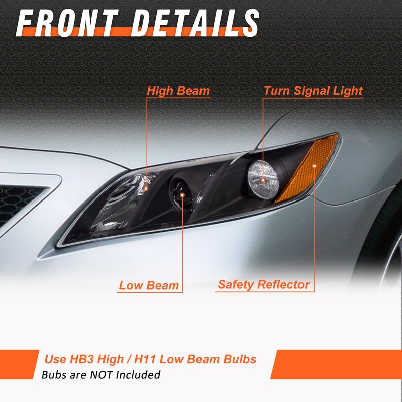 AXLAHA 2007 2008 2009 Toyota Camry Headlights Assembly for 2007-2009 Camry Black Housing Amber Reflector Replacement Driver and Passenger Side