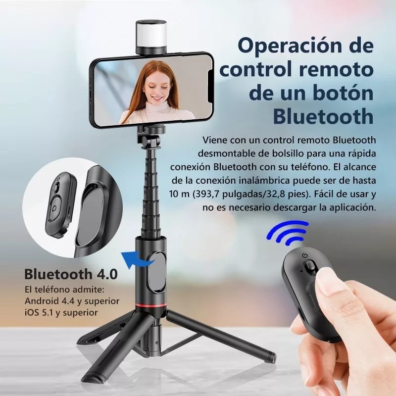 1 trípode de palo selfie todo en uno con luz y control remoto