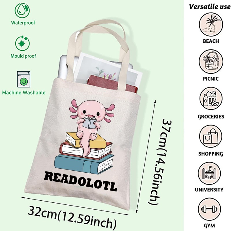 Axolotl Gift Readolotl Tote Bag Mexican Salamander Handbag Kawaii Axolotl Lover Gift Axolotl Book Reading Shopping Tote (READOLOTL TC)