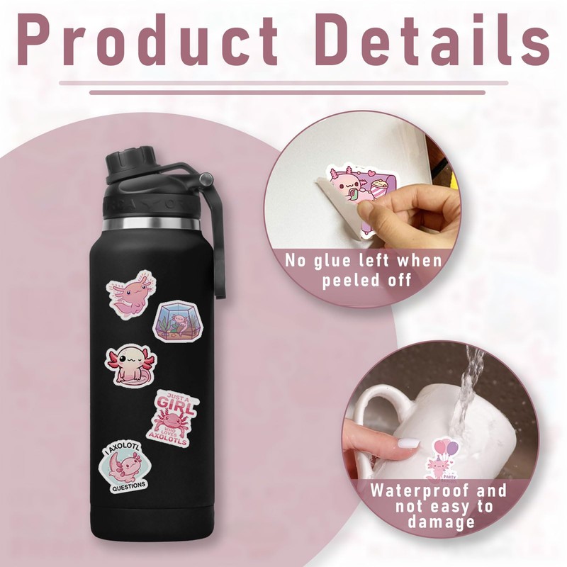 - Easy to reuse or remove: Cute Axolotl sticker set has a strong self-adhesive effect and can be reused and glued to different surfaces. After removal, no residue is left behind.