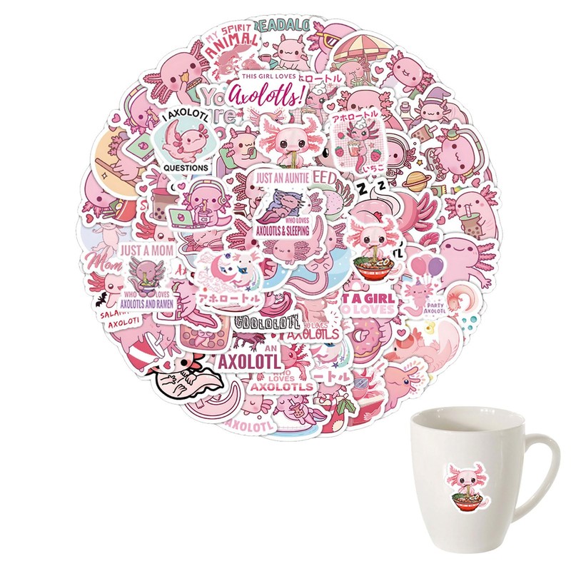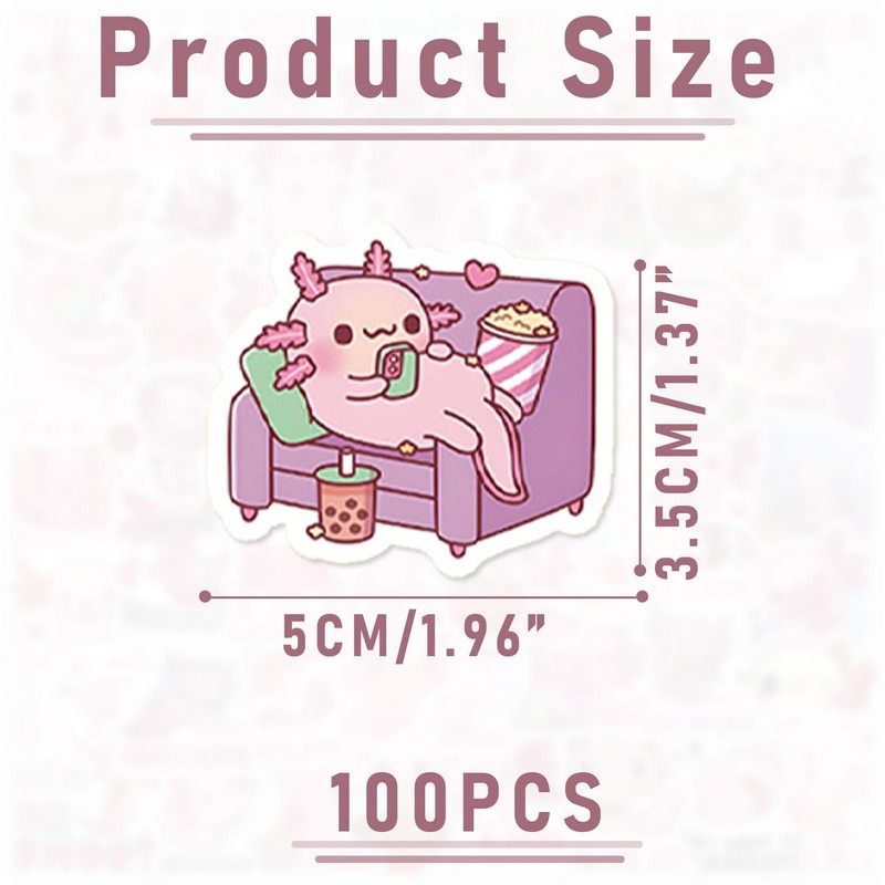 - Cute stickers: Cute Axolotl sticker set contains 100 different cute cartoon salamander images. Let your imagination run wild to create and express your own style on your favourite surfaces