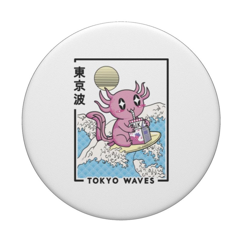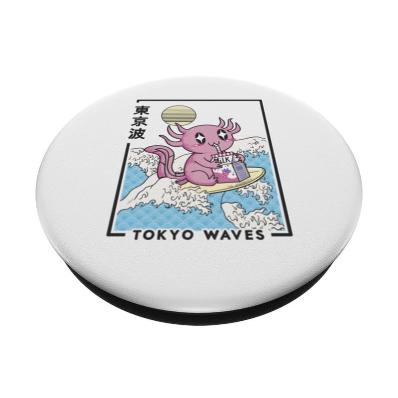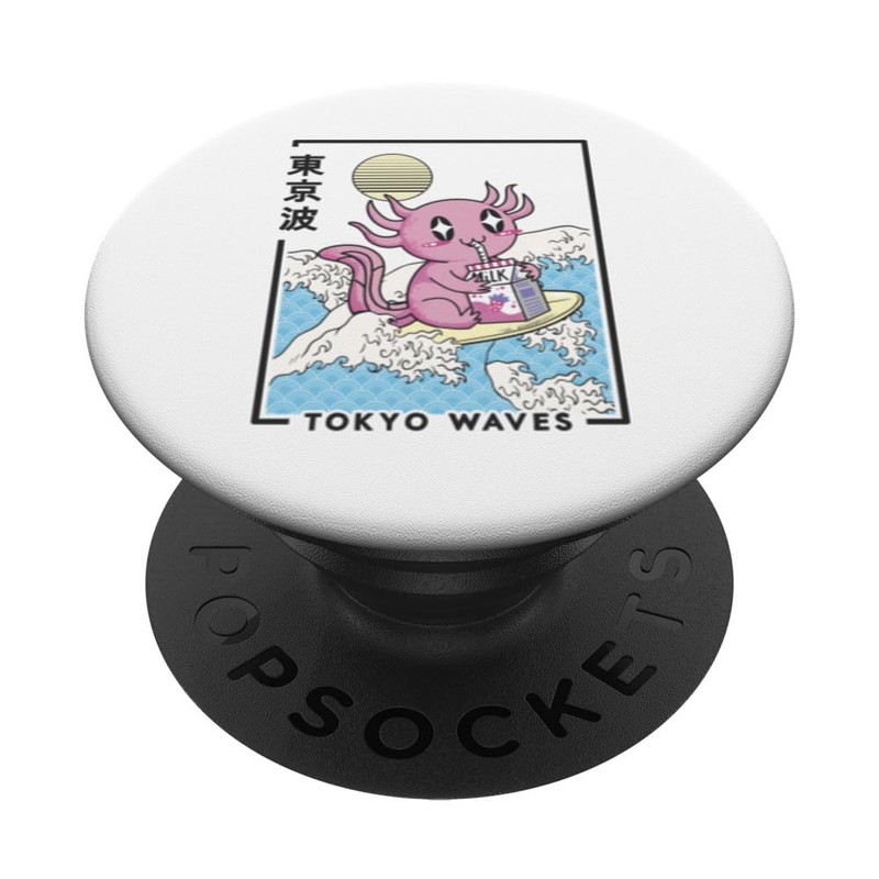 Axolotl Strawberry Milk Great Waves Kawaii Aesthetic PopSockets Standard PopGrip
