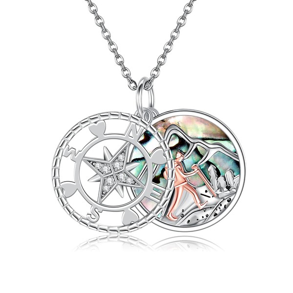 AXOMY Compass Necklace 925 Sterling Silver Travel Waywalker Mountain Pendant Necklace Compass Jewelry Gift for Women Men, Sterling Silver, No Gemstone