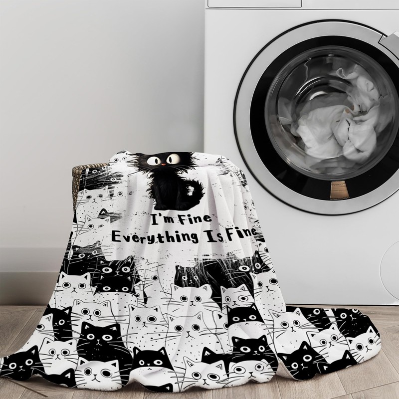 AXULUXAL It's Fine I'm Fine Everything is Fine Cat Blanket, Cat Gifts for Cat Lovers, Cat Themed Gifts, Black Cat Gifts Decor Throw Blanket 50"X60", Cat Lovers, Gifts for Cat Owners Women Teen Girls