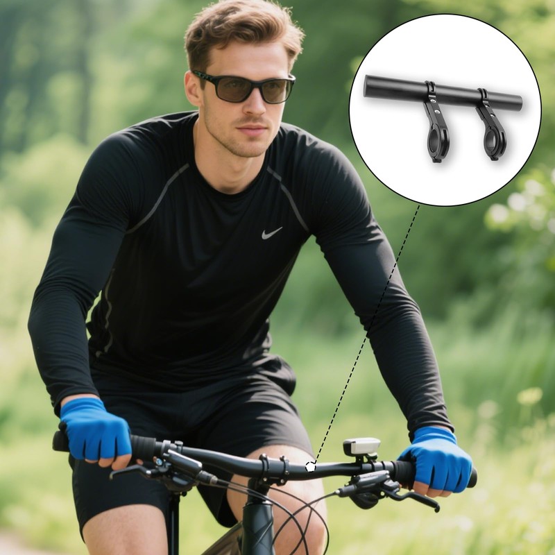 Upgrade your cycling experience with our 20cm Bike Handlebar Extender! This aluminum alloy extension bracket creates extra mounting space for your essential accessories while maintaining perfect balance. Compatible with most bicycles, it securely holds bike lights, speedometers, GPS devices, action cameras, phone mounts, bells and more. The universal design fits handlebars from 22.2mm to 31.8mm diameter.