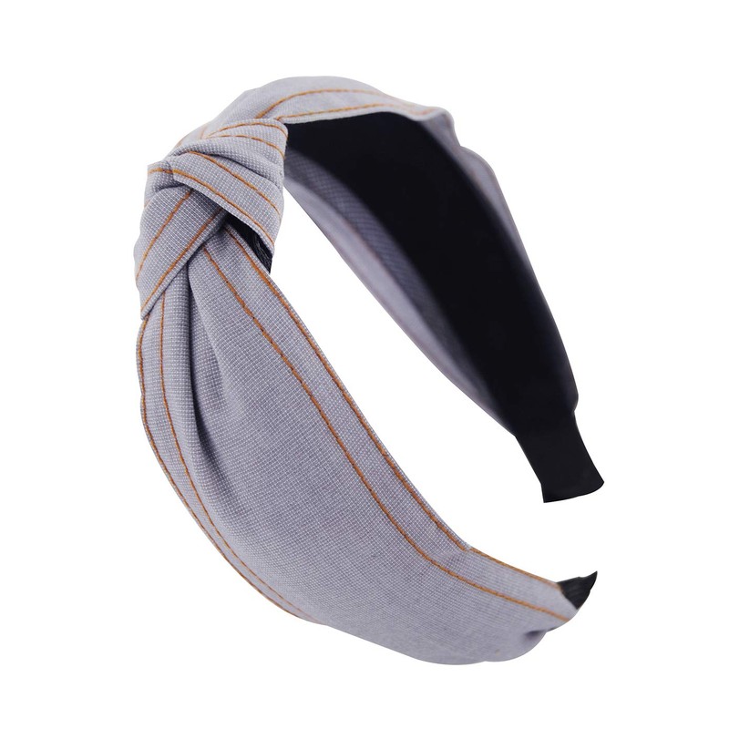 axy HR34J Cotton Headband with Knot and Stitched Line - Vintage - Beautiful Headband, light grey
