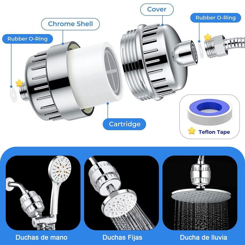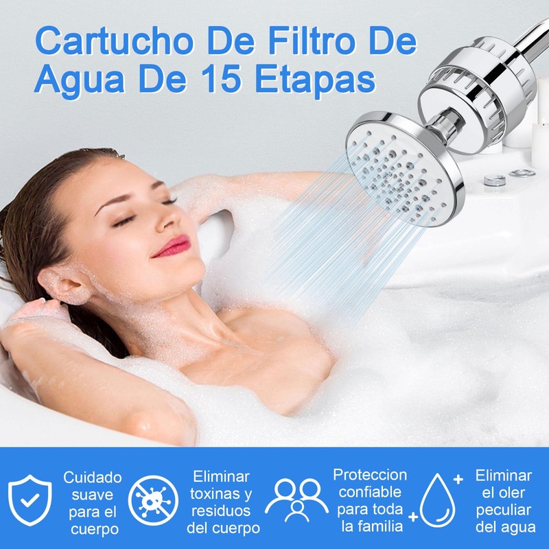 - FILTRACION AVANZADA:Nuestro filtrador de ducha cuenta con 15 niveles de filtración, garantizando que el agua que disfrutas esté libre de sustancias nocivas, olores anormales y impurezas.