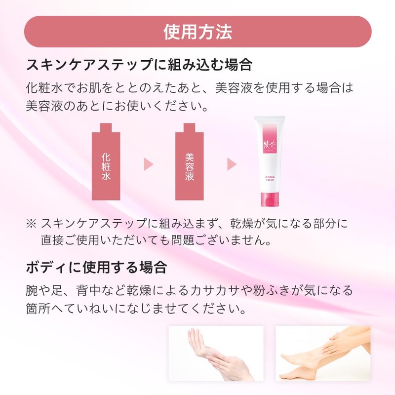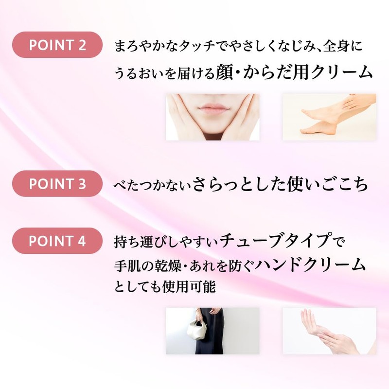 - (Face Care and Body Care) This cream can be used as a face cream or body cream. It gently blends with a mellow touch and provides moisture to the entire body. Non sticky, smooth and comfortable to use