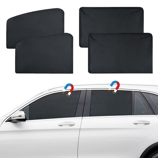 AYAMAYA Magnetic Car Side Window Sun Shades - 4PCS Blackout Window Cover Privacy Curtains 100% Block Light & UV, Upgraded Universal Car Window Sunshades for Baby with 14 Magnets for Most Cars and SUV
