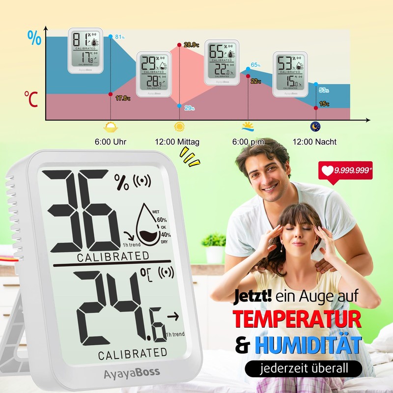 AyayaBoss Indoor Thermometer, 6 Pack Temperature and Humidity Meter, Digital Hygrometer Room Thermometer for Baby, Children's Room, Office, Reptiles - Mini Version
