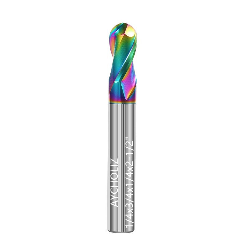AYCHOLIZ 1/4" Solid Carbide Ball Nose End Mill 2Flute DLC Coated HRC55 CNC Milling Cutter Bits for Copper & Aluminum Alloys