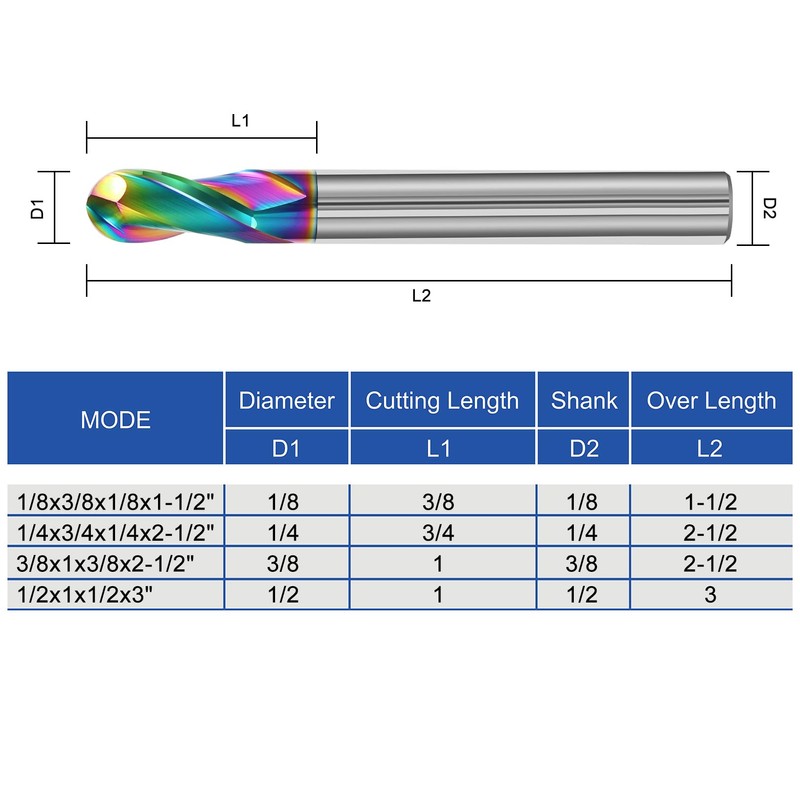 - 【Specification】Carbide Ball Nose end Mill With 1/4" shank, 2-1/2" overall length. Package include,1pc ball nose end mill.