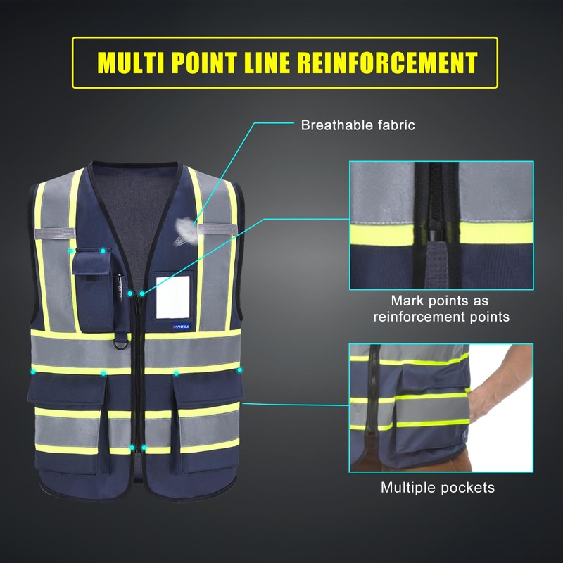AYKRM 11 color High Vis Reflective Safety Vest for Women Men Security Pocket Zipper, Navy, 3X-Large