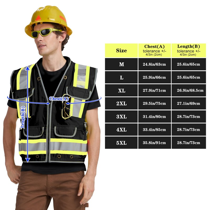 - ✅【MATERIALS】SURVEYOR WORK VEST MATERIALS: Made with heavyweight polycotton fabric in front, a heavy-duty zipper closure, and reinforcement edge binding, the Unisex surveyor safety vest is built to last. The Reflective Tape is applied with heat transfer to ensure that stitching won't come loose. Rugged bombazine material supports extra weight carried in cargo pockets. Customers who prefer a looser fit should order 1-2 sizes larger. Please check the size chart before placing an order!