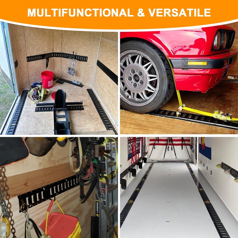 - UNIVERSAL E-TRACK TIE-DOWN KIT: This all-in-one cargo securing system features multiple anchor points, for storage, transportation, and outdoor hauling needs, making it ideal for trailers, trucks, RVs, warehouses, and garages, They are ideal for securing ATVs, UTVs, motorcycles, tractors, landscaping equipment, furniture, tools, storage containers, and oil drums