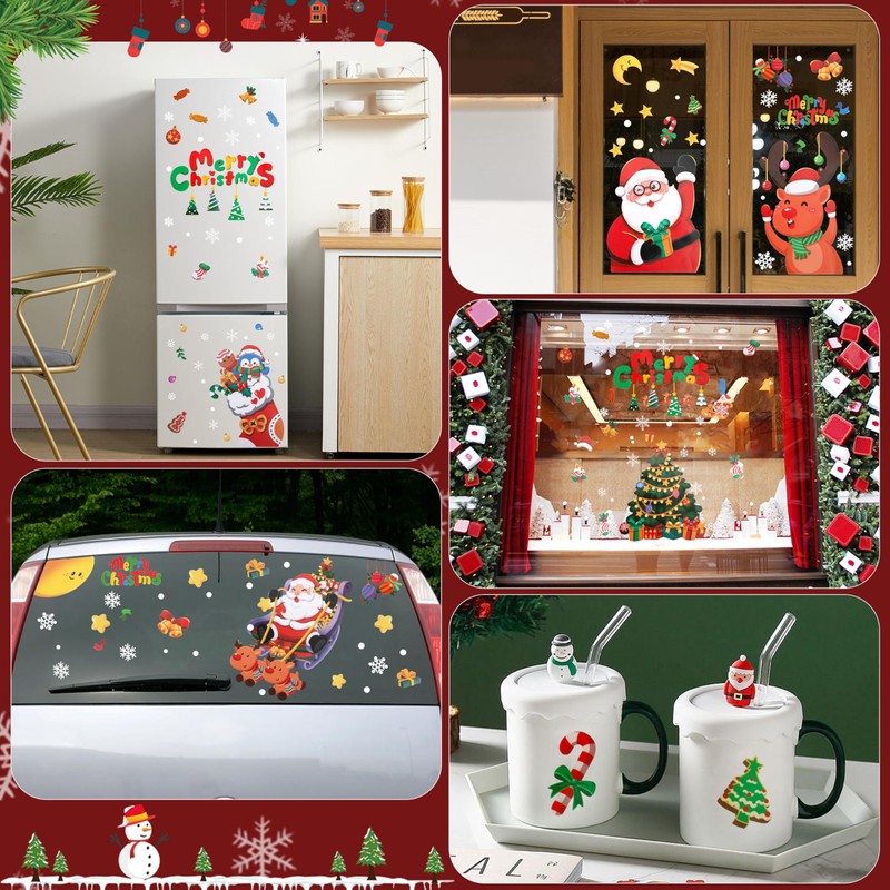 • CHRISTMAS THEME Unleash Christmas spirit with Christmas window stickers. Each set features a range of adorable patterns including Santa, snowman, Christmas trees, snowflakes, gifts and more. Create a strong festive atmosphere