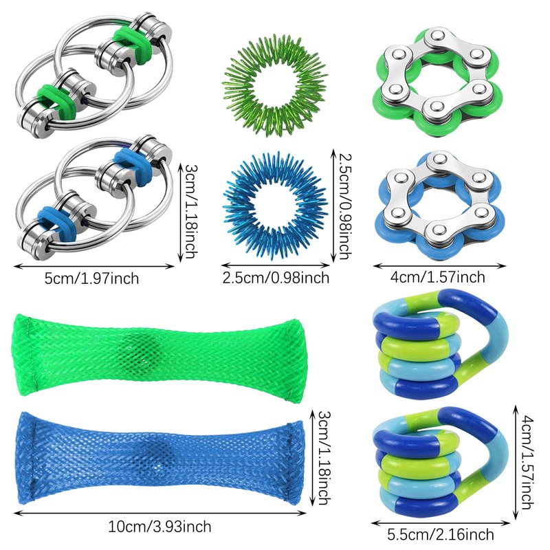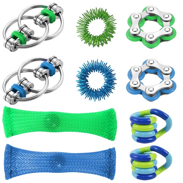 - Package contains: You will get 10 pieces stress relief toys, including 8 pieces blue and green chain stress relief toys and 2 pieces hundred twisted ropes, with different ways to play, which can make you feel calm and relaxed.