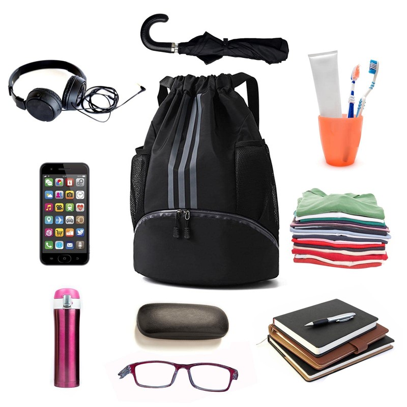 - Waterproof & Durable: The drawstring sports bag is made of high-quality 1080D nylon Oxford cloth, weighing about 310 grams. It is light but durable enough. Waterproof and dustproof, keeping the contents of the bag dry and clean. The hardware buttons and zippers are sturdy and smooth, making it comfortable to use.