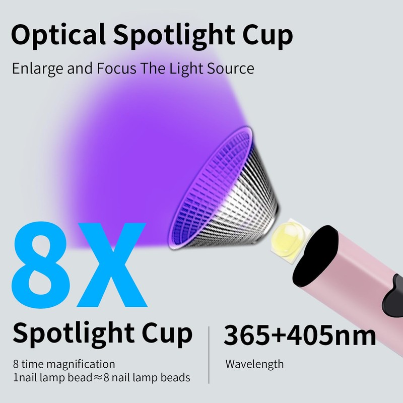 - 【Handheld UV Light 】: The Ayshone UV light for nails equipped with high-quality lamp beads emitting 365 + 405nm, this device incorporates a spotlight cup that can focus the light source make it more efficient for drying gel nails.It significantly reduces curing time and ensures even curing from multiple angles.