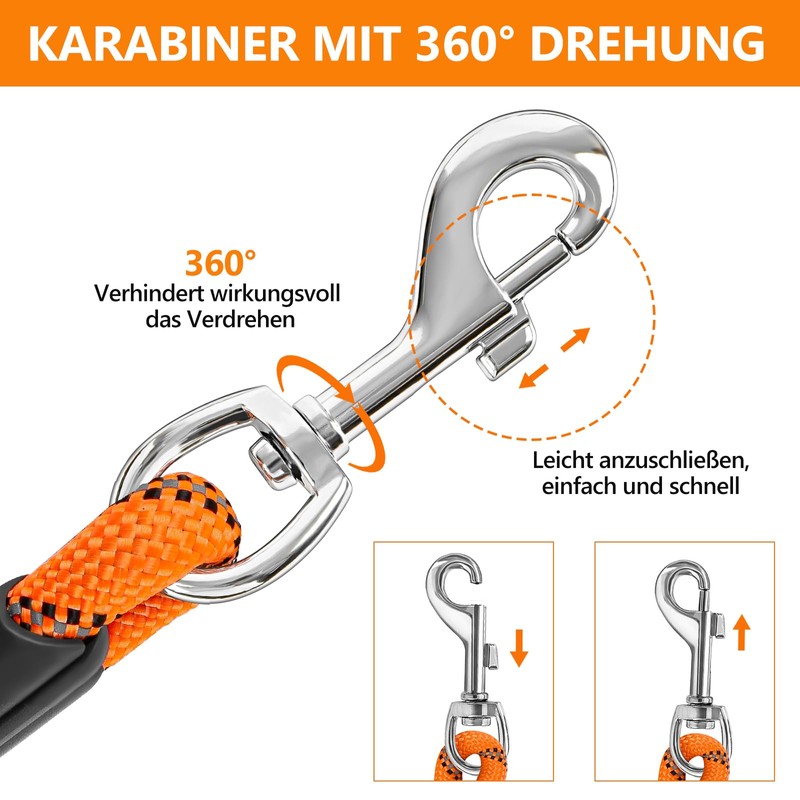 - Soft rubber handle: the handle of the long lead for dogs is made of a soft and durable rubber that feels super soft but resistant for amazing comfortable shock grip, protects your hand from rope burning, and will make you and your dog many pleasant walks together without any problems.