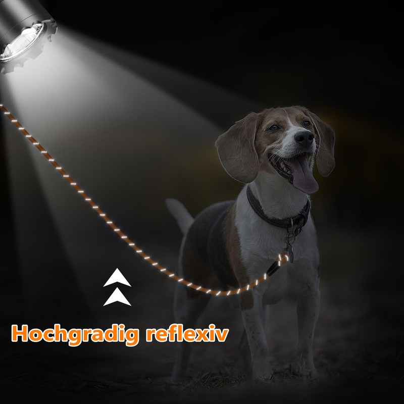 - Durable reflective recall lead: strong dog lead with reflective threads sewn along the lead to improve visibility at night in front of approaching vehicles with headlights on. And allow for total control over your puppy or dog and also allow the freedom to do his business.