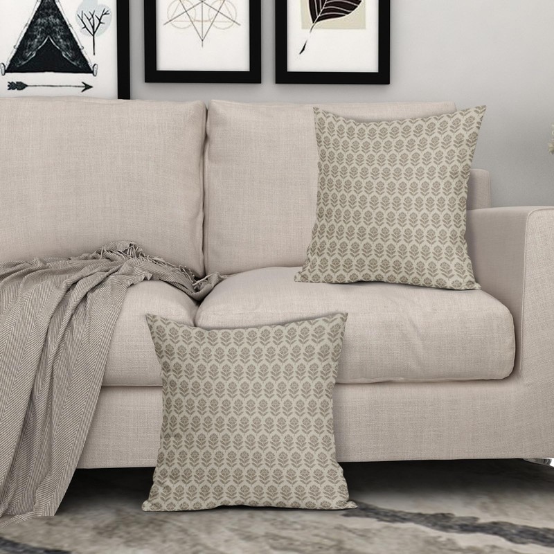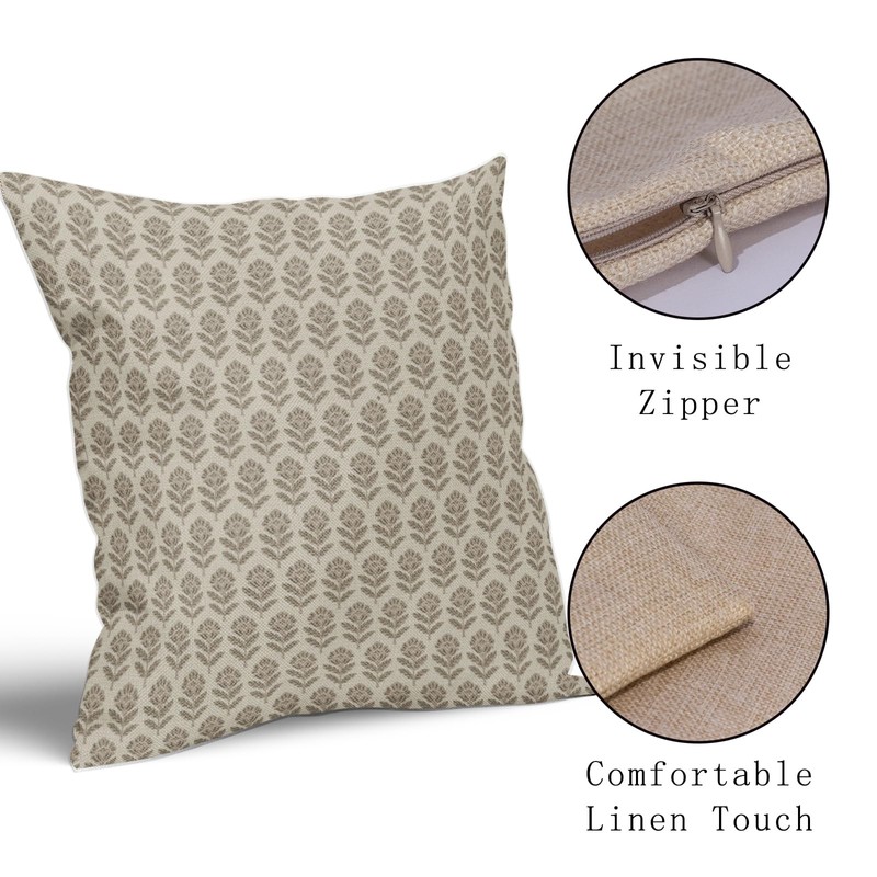 Aytipun Floral Pillow Covers 18x18 Set of 2 Block Print Light Taupe Patterned Decorative Outdoor Pillowcases Rustic Farmhouse Throw Cushion Case Couch Sofa Bed Decor