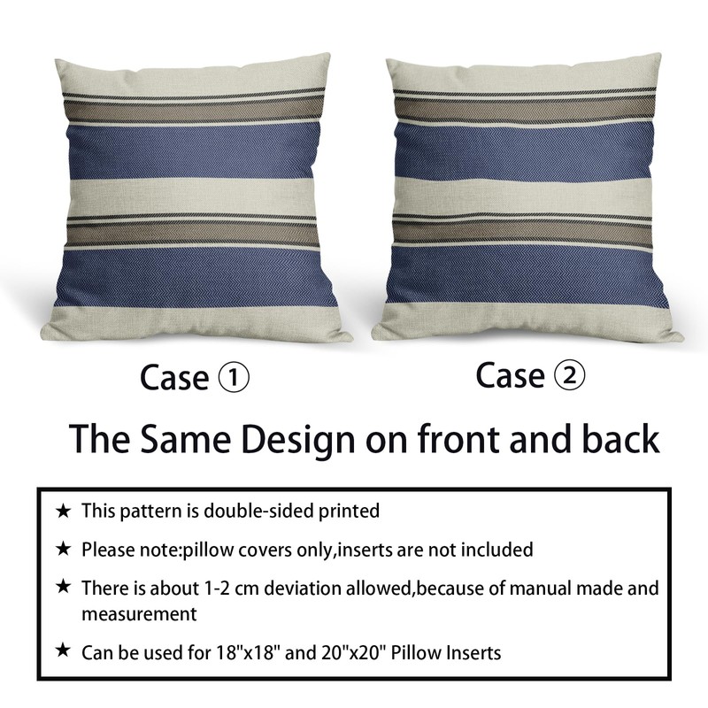 - Size: 16x16 inches (40cm X 40cm).Our navy blue pillowcases are printed with the same graphic design on both sides, so you can place them however you like. Our brown and navy blue striped pillow cases feature invisible zippers that blend in with the pattern, smooth zippers, and superb stitching for easy insertion and removal, delivering impeccable beauty.
