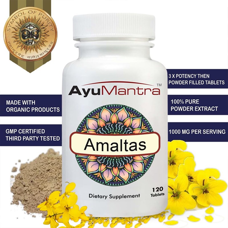 AyuMantra Organic Amaltas Tablets (Cassia Fistula) - an Excellent Digestion Correcting herb for Multi-systemic Application - 90 Tablets, 1000mg
