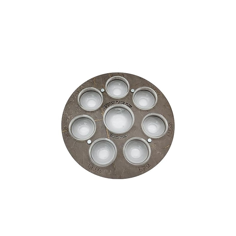 Ayuni Gifts of the World Seder Rosh Hashanah Laser-cut Wood Plate with Glass Saucers 12" (Walnut Brown)