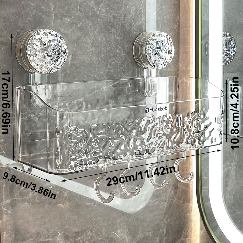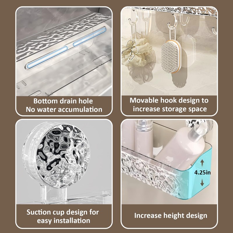 - Elegant Design: Elevate your decor with our glacier-patterned suction cup shelf. Featuring a stylishly transparent and light luxury design, it not only serves practical purposes but also adds a touch of sophistication to your bathroom, bedroom, or kitchen.