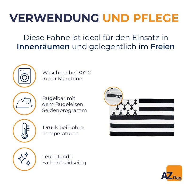 AZ FLAG - Brittany Flag - 150 x 90 cm - Brittany Flag 100% Polyester with Brass Eyelets - 110 g