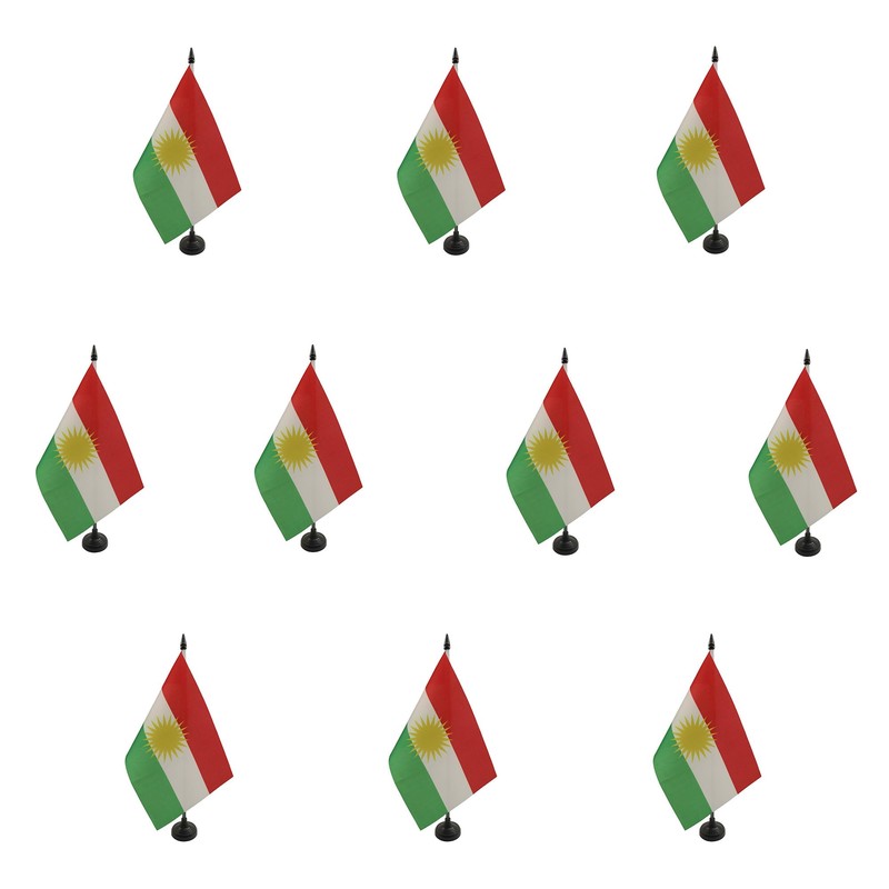 AZ FLAG Kurdistan Table Flags 8.25" x 5.5" 10 Small Kurdistan Table Flags 100% Polyester with 10" Flag Pole and Black Plastic Base (Pack of 10)