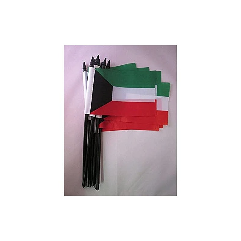 AZ FLAG Kuwait Flag 4'' x 6'' black stick - Kuwaiti flags 10 x 15 cm - Light Polyester