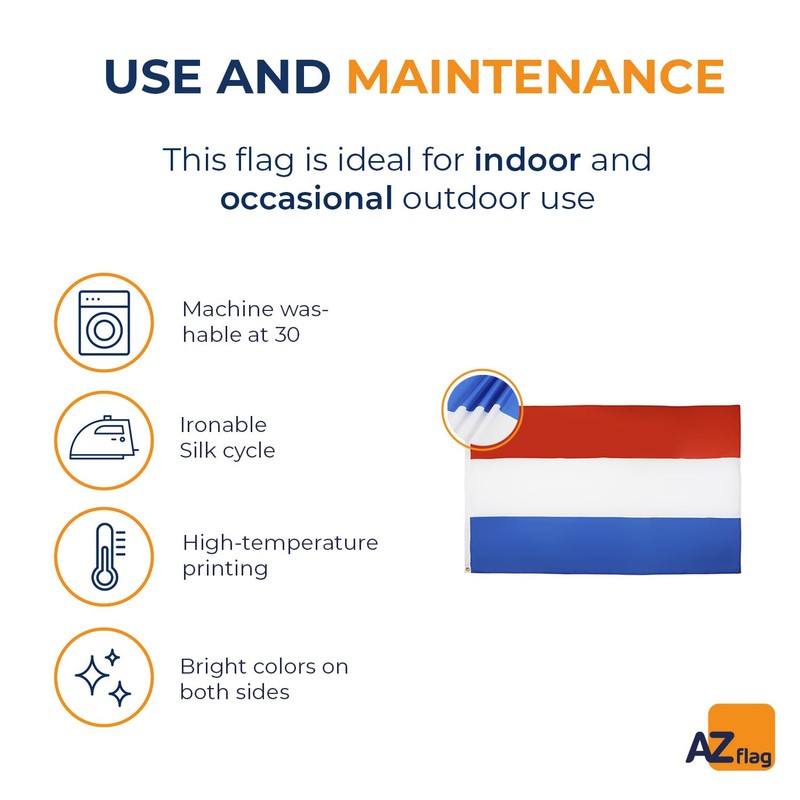 - Ultra resistant: for indoor and occasional outdoor use, this colourful Dutch flag is resistant to light wind, water, heat and abrasion. Choose a durable flag
