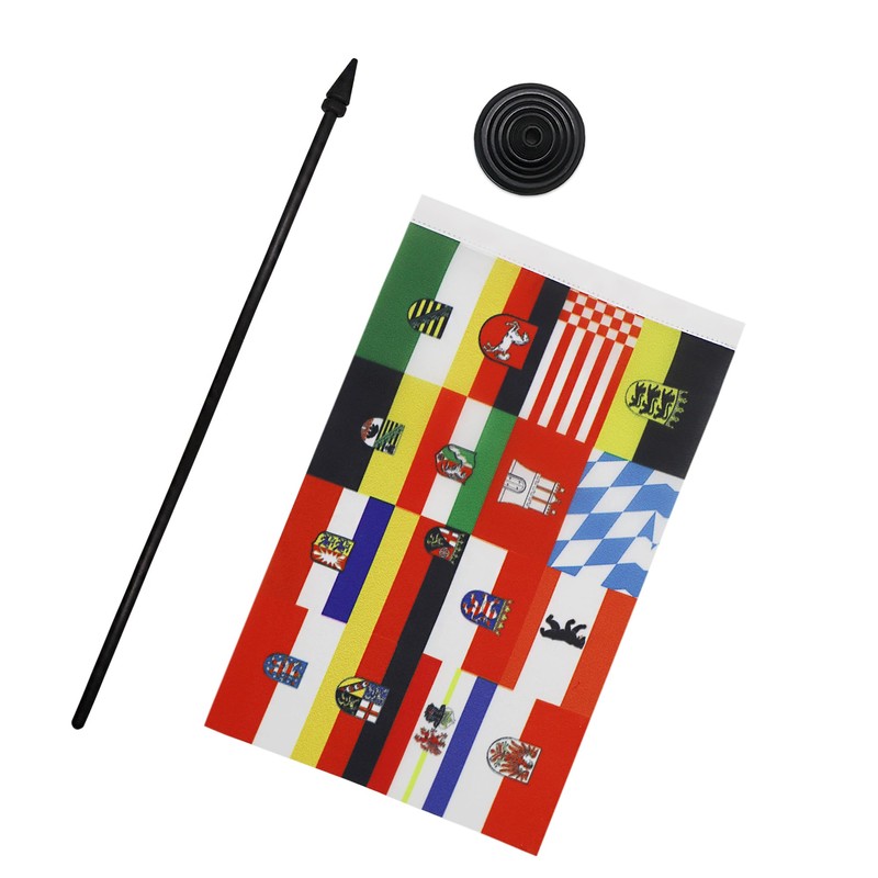 - Stand Up Wherever You Want: This mini flag of German landers on base in intense colours can be displayed on the desk, on a table, a buffet, a fireplace, etc. For an original and successful interior.