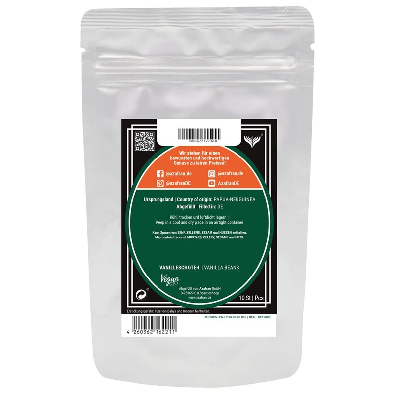 Azafran South Sea Vanilla as Bourbon Vanilla Beans Replacement 12/13 cm Pack of 10