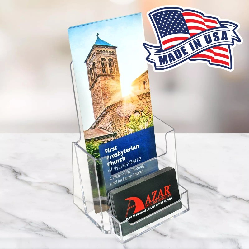✅ DURABLE ACRYLIC - Azar’s single-tier easy access tabletop acrylic sign holder is made from high-quality, injection-molded, durable clear acrylic. The tabletop sign holder is manufactured in the USA.