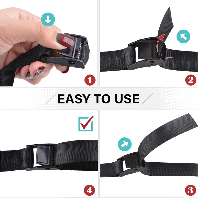 - Great Value Set: Includes a set of 2 or 4 cam buckle straps. The buckle straps are perfect for trucks, cargo, motorcycles, trailers, and suitcases, preventing items from falling or getting lost. With strong weight capacity, they can be used with confidence