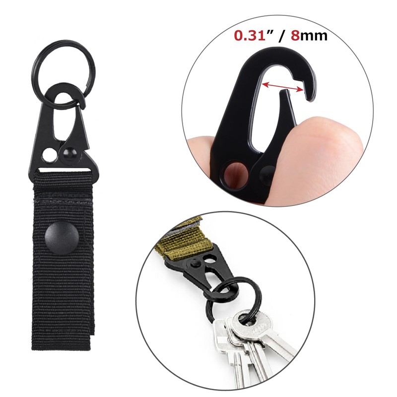 - Material: The belt is made of nylon fabric, and the carabiner and key chain are made of zinc alloy