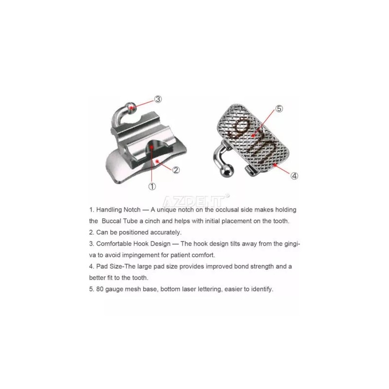 Azdent Set Tubos Dental Con Malla 1 Molar Roth Slot .022 (1 Kits)