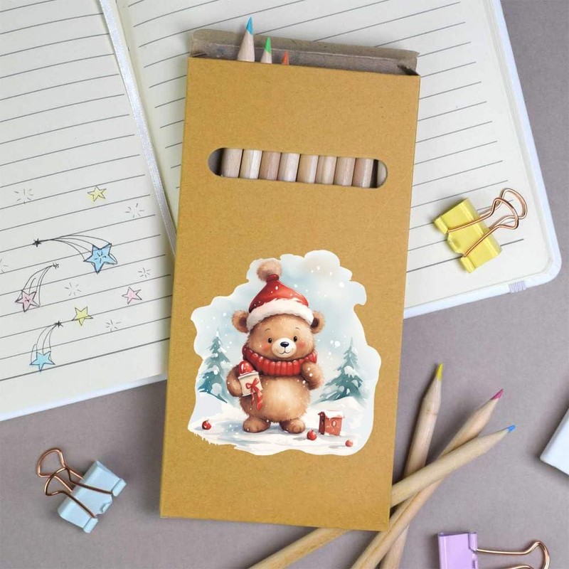 Azeeda 12 x 'Cute Christmas Teddy' Long 178mm Coloured Pencils/Pencil Set (PE00056589)