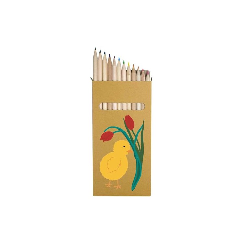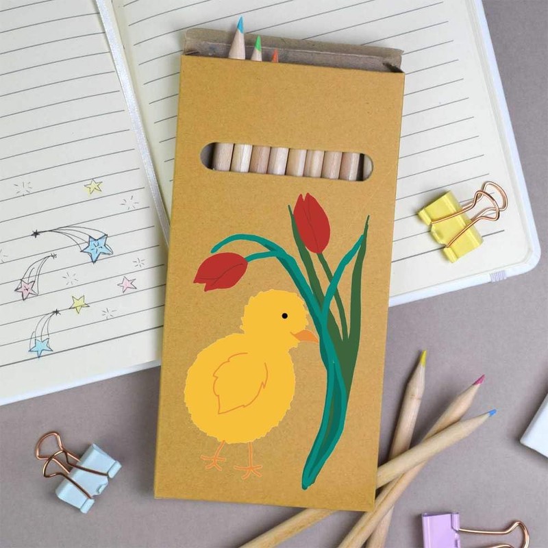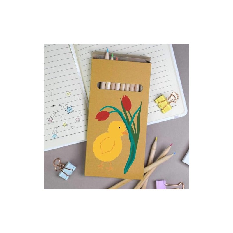 Azeeda 12 x 'Easter Chick And Tulips' Long 178mm Coloured Pencils/Pencil Set (PE00062445)