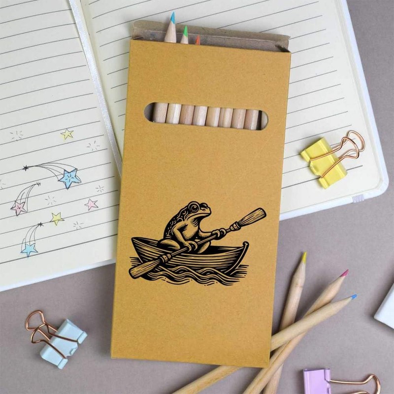 Azeeda 12 x 'Frog In A Rowing Boat' Long 178mm Coloured Pencils/Pencil Set (PE00067289)