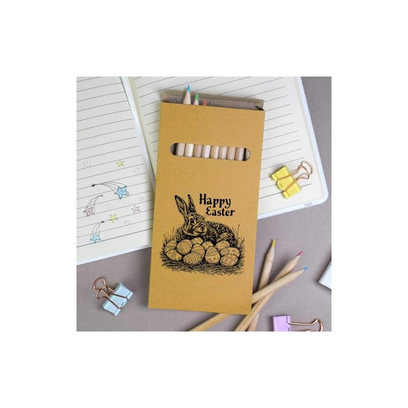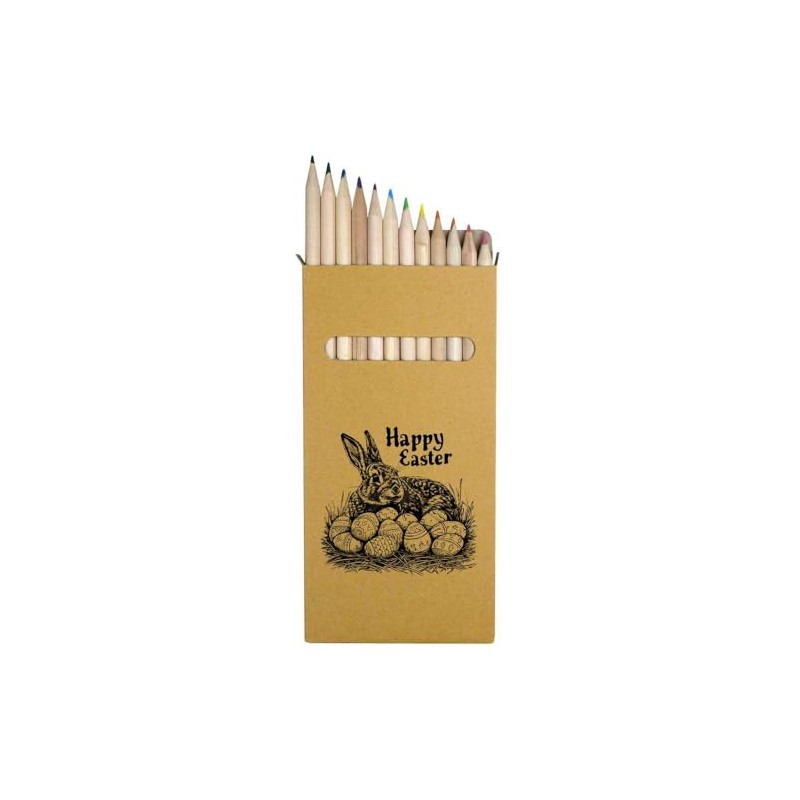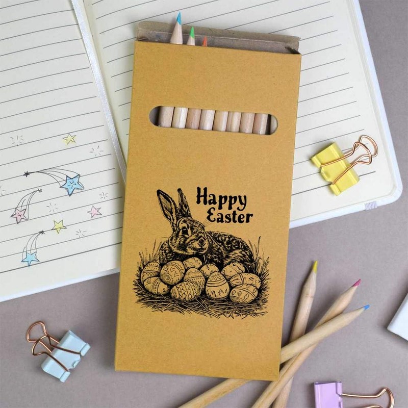 Azeeda 12 x 'Happy Easter with Rabbit and Eggs' Long 178mm Coloured Pencils/Pencil Set (PE00063301)