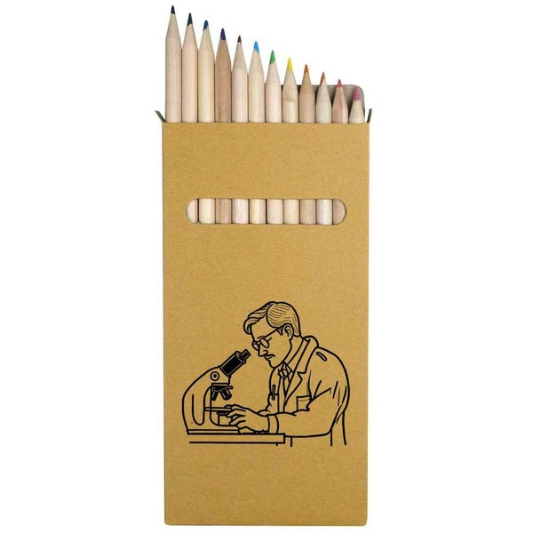 Azeeda 12 x 'Wissenschaftler untersuchen einen Mikroskop-Objektträger' Lange 178mm farbige Bleistifte/Bleistift Set (PE00060819)