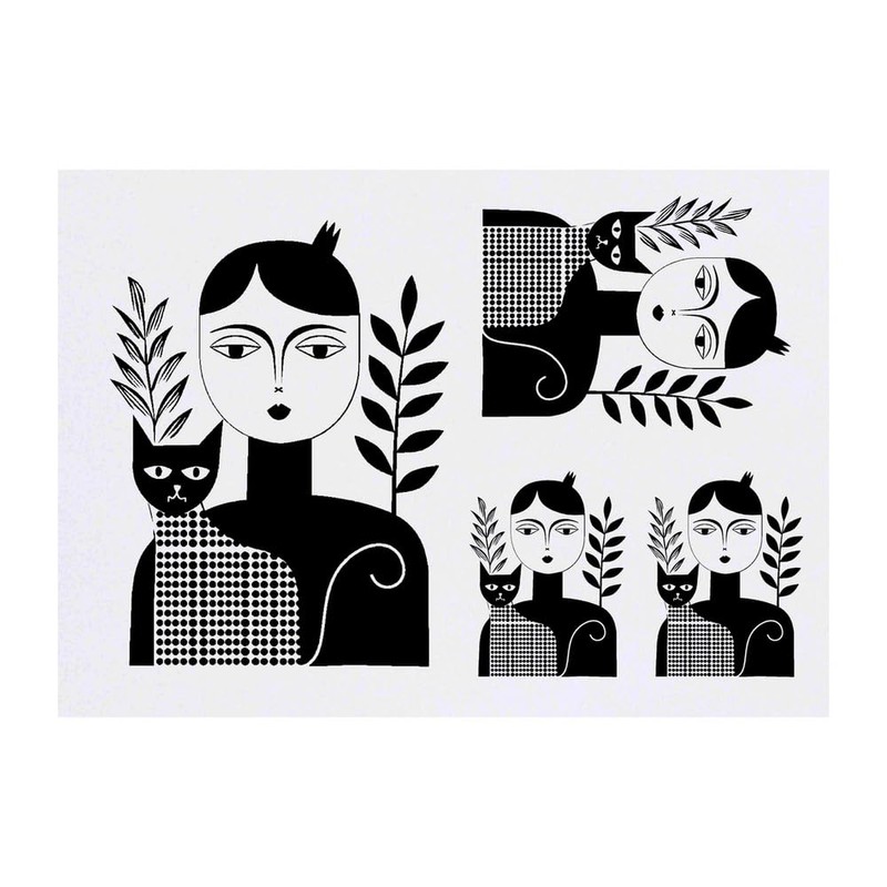 Azeeda 4 x 'Abstrakte Frau und Katze' Temporäre Tattoos - Wasserfest, Hautfreundlich & Ungiftig · Transfers in Verschiedenen Größen (TO00072690)