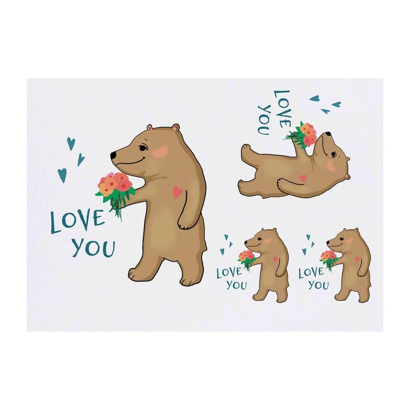 Azeeda 4 x 'Bär mit Blumen' Temporäre Tattoos - Wasserfest, Hautfreundlich & Ungiftig · Transfers in Verschiedenen Größen (TO00084954)