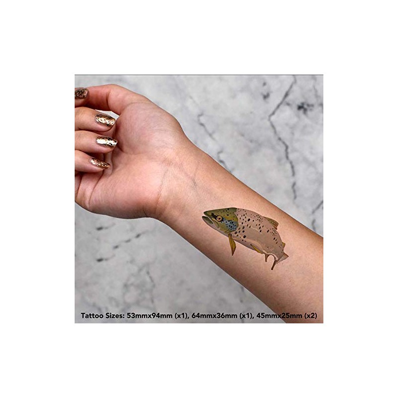 Azeeda 4 x 'Braune Forelle' Temporäre Tattoos - Wasserfest, Hautfreundlich & Ungiftig · Transfers in Verschiedenen Größen (TO00041473)